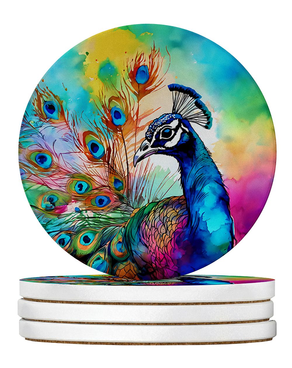 Large Sandstone Coasters Pack of 4 featuring breed specific Peacock artwork. Introducing Caroline's Treasures Large Sandstone Coasters Pack of 4, the perfect addition to your home decor. Each coaster measures nearly 4 inches and is made from absorbent sandstone with a cork backing. Designed and printed in the United States, these coasters feature artwork from Caroline's Treasures' talented artists. Protect your countertops and tables from hot and cold drink condensation with these absorbent coasters. They efficiently absorb moisture, ensuring your surfaces stay dry and clean. Choose from a wide range of designs to update and enhance your decor or give them as a thoughtful gift for any occasion. Cleaning is a breeze�simply wipe the coaster with a damp towel to remove any spills or stains. Each set comes in a brown gift box, making it ready to be wrapped for that special person in your life. These absorbent sandstone coasters also make an excellent housewarming gift, providing both practicality and style. Celebrate birthdays, Mother's Day, Father's Day, Thanksgiving, Christmas, Teacher's Appreciation Day, or simply show someone you care with these versatile and charming coasters. Caroline's Treasures Large Sandstone Coasters Pack of 4 is the perfect happy gift for any occasion.