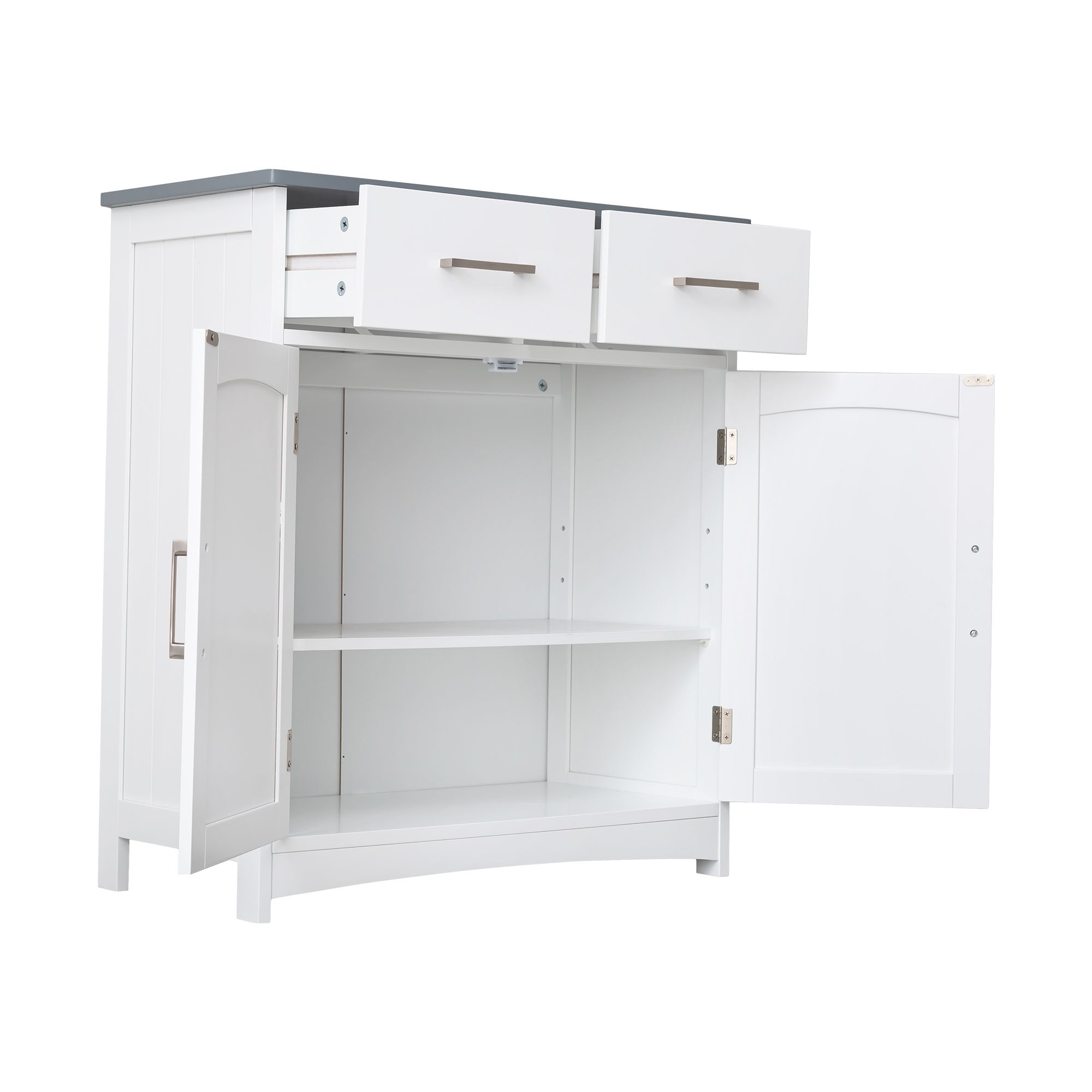 FRALIMK Sideboard Buffet Cabinet, Wood Coffee Bar With Cabinet Two Drawers, Adjustable Shelves And Arched Doors, Sideboard Cabinet White And Gray, Mdf