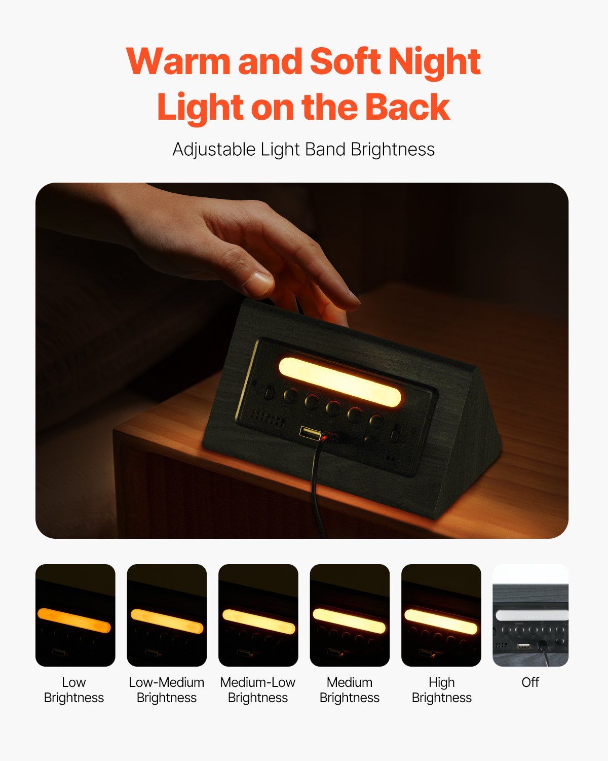 4.Simple & Easy to Use: The buttons are laid out logically, making it easy to operate. Need to set your alarm, adjust the night light, or switch between time and temperature? You can do it all with just a few presses-no complicated instructions needed!